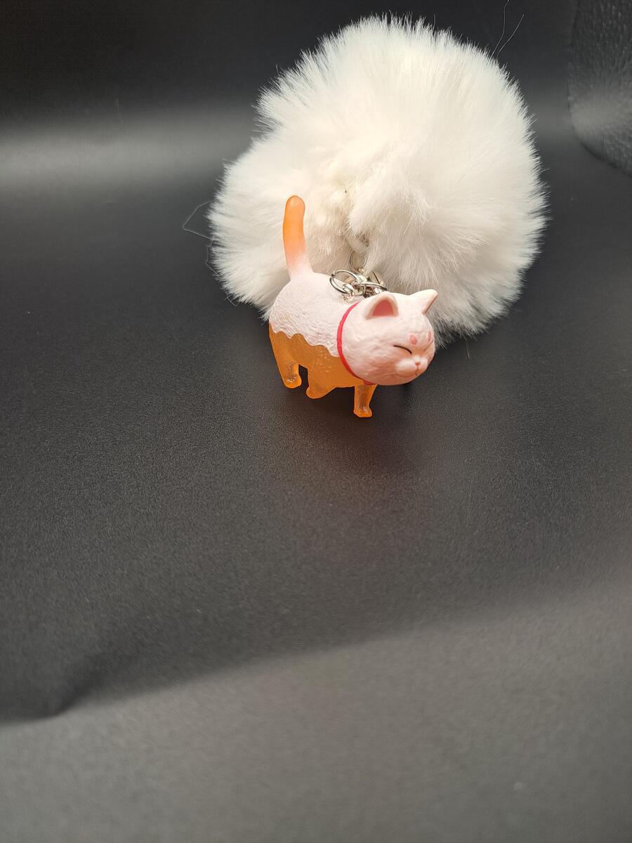 ~ 1 which is a yellow cat and a yellow puff ball and gold hardware.