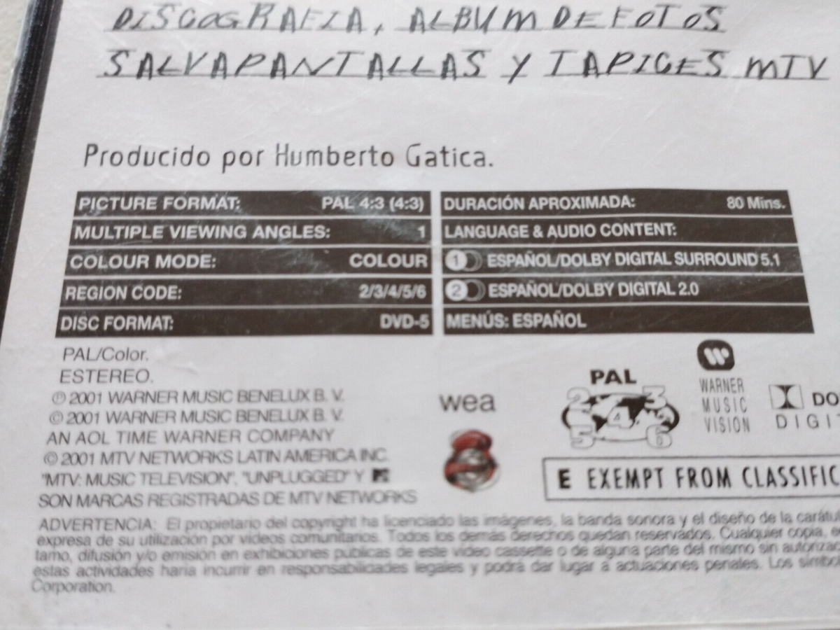 Alejandro Sanz MTV Unplugged WEA Region All 2001 - DVD
