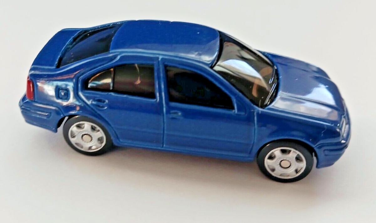 This is a hard to find blue Volkswagen Mk 4 Jetta sedan (the late 90's to mid 2000's Version) by Maisto. It's a Hot Wheels Sized Car, 1:64 scale, just shy of 3 inches long. With really nice details like the Volkswagen emblems and lights, this car is from approx. 1997. It's still new and never played with, just out of it's package.