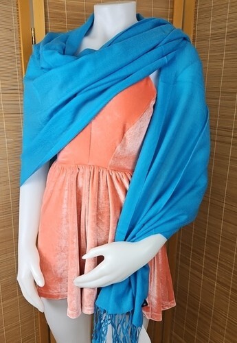 Swat STS Cashmere Scarf Shawl Head Cover Blue Fringe Lightweight Shoulder Wrap
