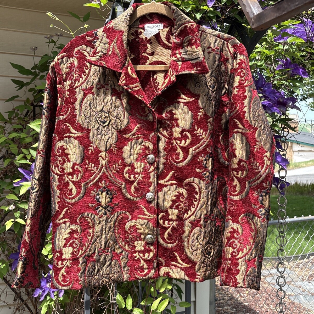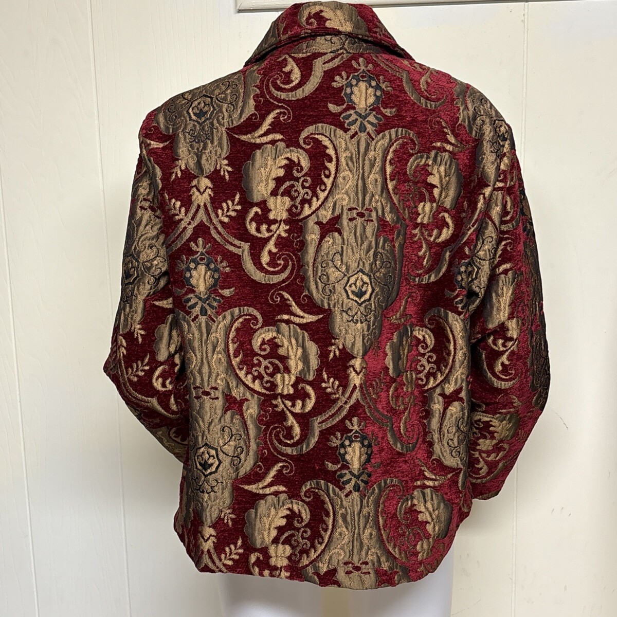 DB Sport Tapestry Velvet Jacket Womens M Ruby Gold Blazer Embroidery Vintage