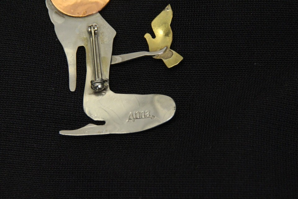 Angel Brooch Pin Silver Copper Gold Tone Dove Anna 2" H x 1.5" W Spirit Peace