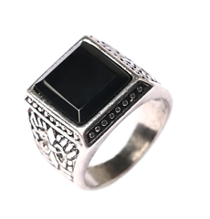 Square black engraved real stone sterling plated ring BRX028 vintage style jewel