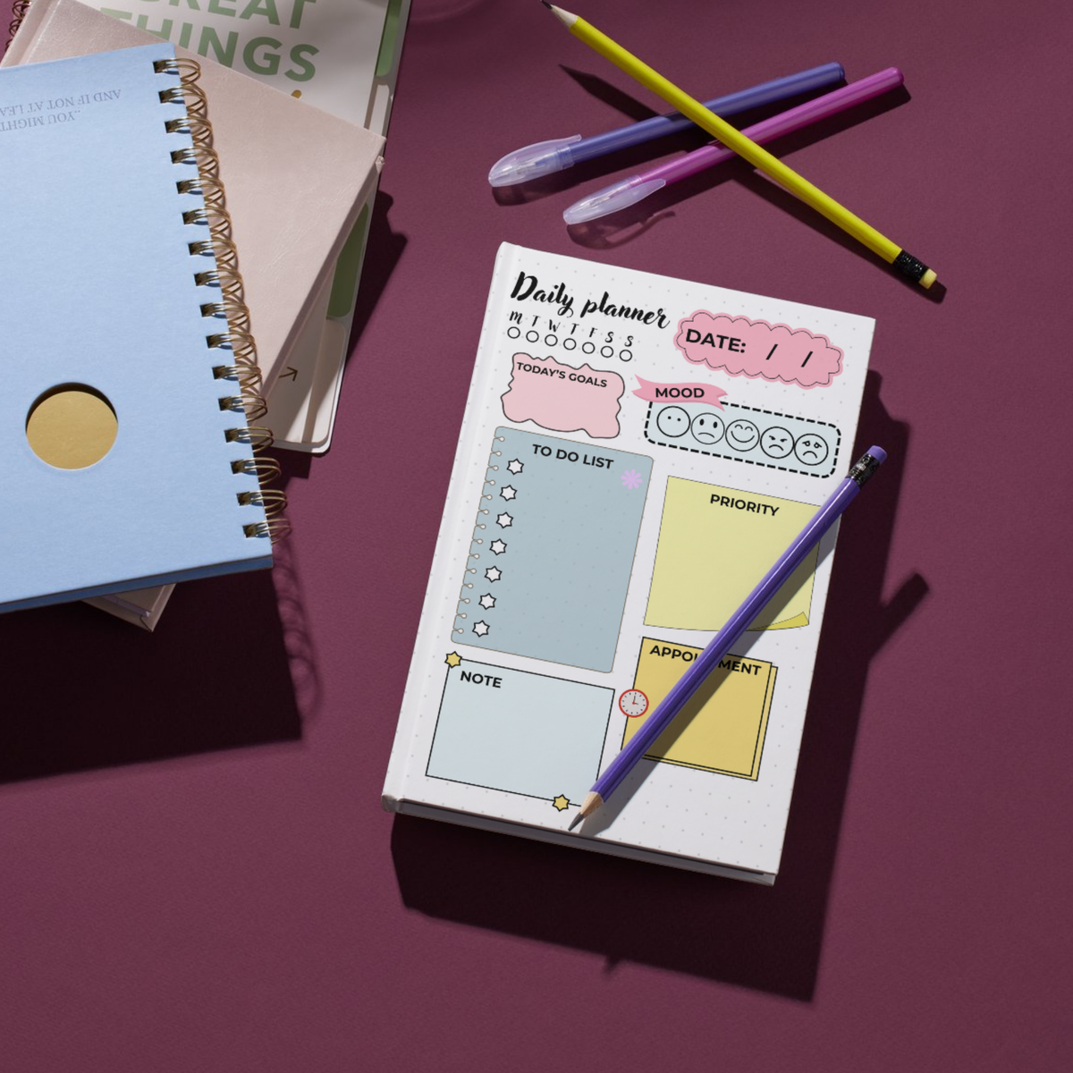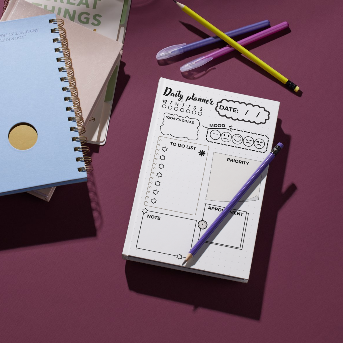 Printable daily planner, to-do list template, little puppet, calendar, A5, 6.9in
