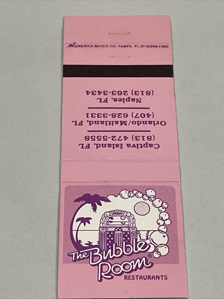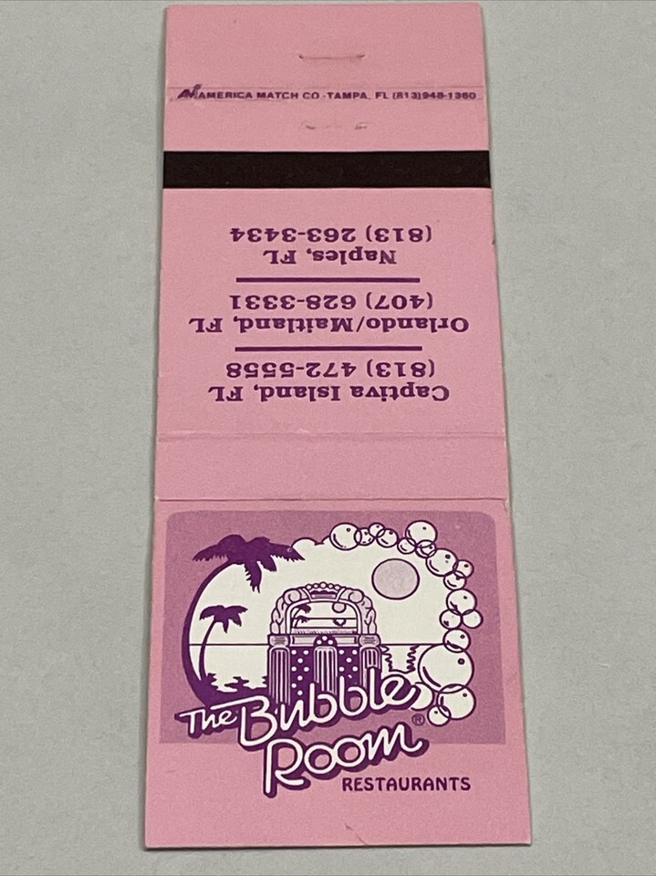 Vintage Matchbook Cover The Bubble Room Restaurants Naples, FL. gmg Unstruck