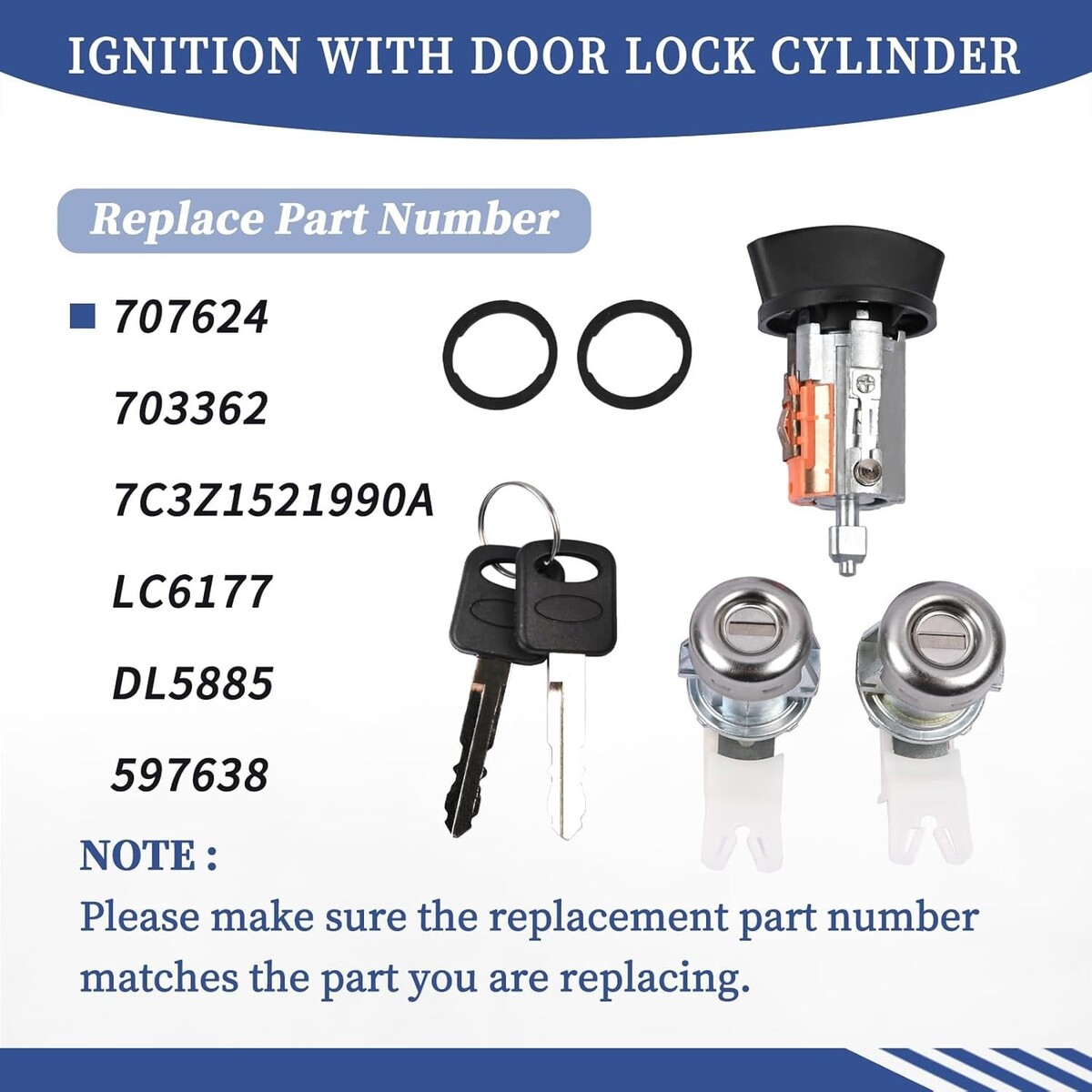 Replace Part Number: 707624 703362 7C3Z1521990A LC6177 DL5885 597638.
