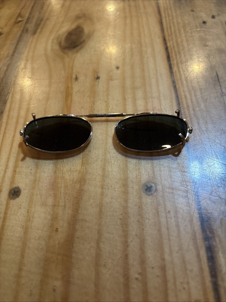 The Shade Control Sunglasses Lens Covers with Case are a stylish and vintage accessory that exudes sophistication. The oval-shaped gold metal frame houses black lenses, giving the wearer a classic and timeless look. This original pair of sunglasses comes with a protective case, making them perfect for on-the-go use or adding a touch of retro flair to any outfit.