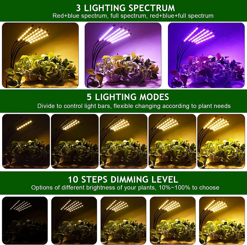 Grow Lights for Indoor Plants,5 Heads Red Blue White Full Spectrum Plant Light w
