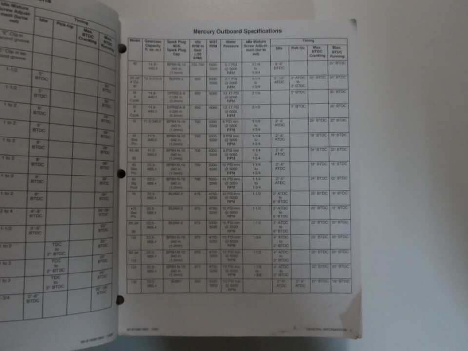 Beaucoup d'informations et illustrations, couvre beaucoup, pas de pages manquantes, etape par etape Instructions, explose Illustrations et / ou diagrammes, grand manuel a avoir lorsque vous possedez Mercury / Mariner. Ce manuel vous fera economiser de l'argent Reparations/ /Service.