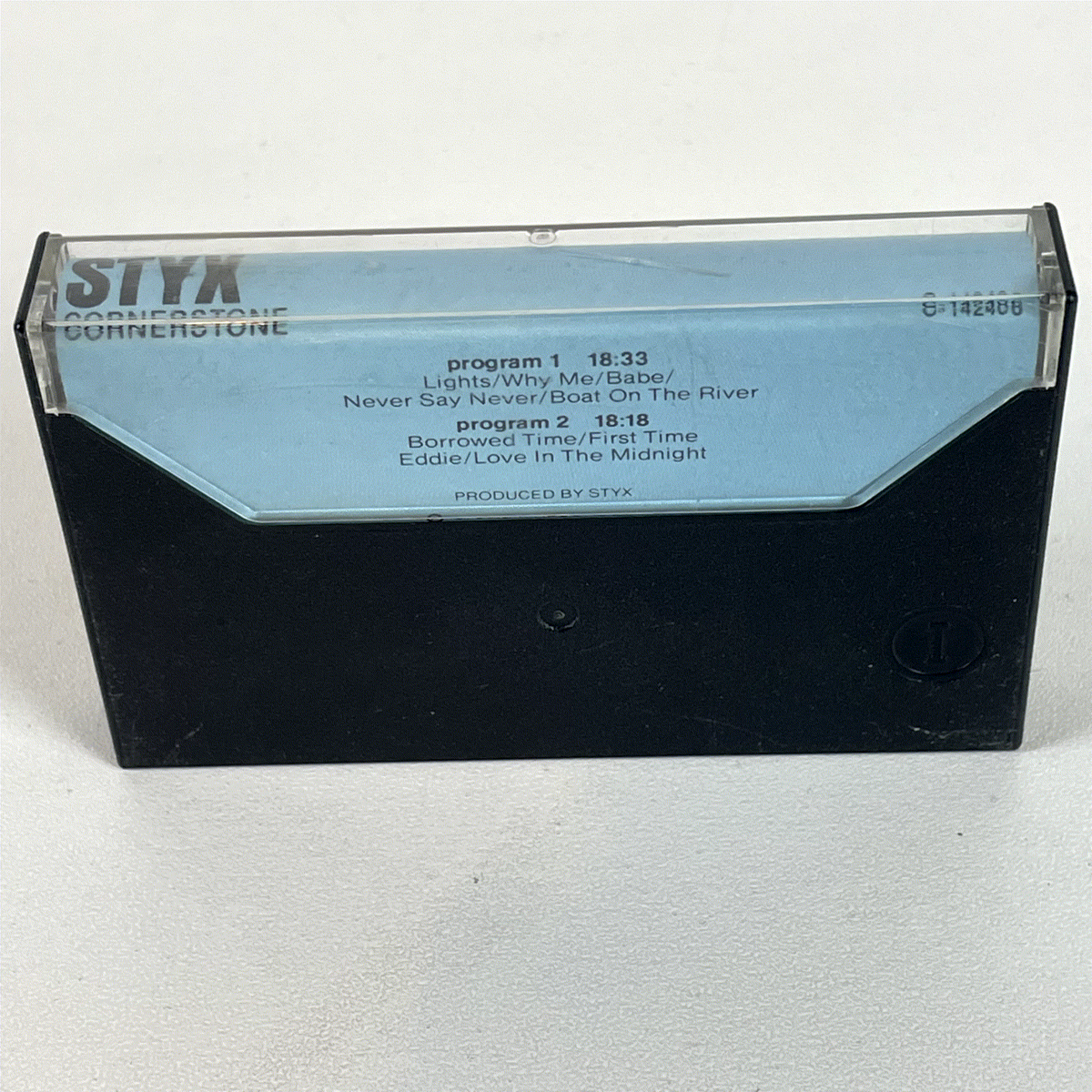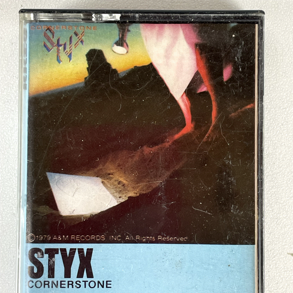 Immerse yourself in the classic rock sound of Styx with their iconic 1979 album, "Cornerstone," presented on this vintage cassette tape. This release from A M Records features some of the band's most beloved tracks, including "Babe," "Lights," and "Boat On The River." The album showcases Styx's signature blend of progressive rock, hard rock, and power ballads, making it a pivotal recording in their discography and a must-have for any Styx enthusiast or collector of 70s rock memorabilia.