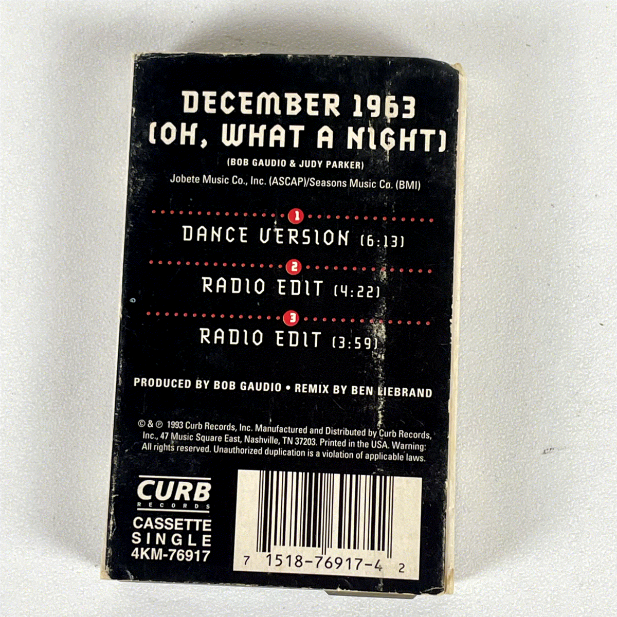 Four Seasons December 1963 (Oh, What a Night) Cassette 1993 Curb Records Single