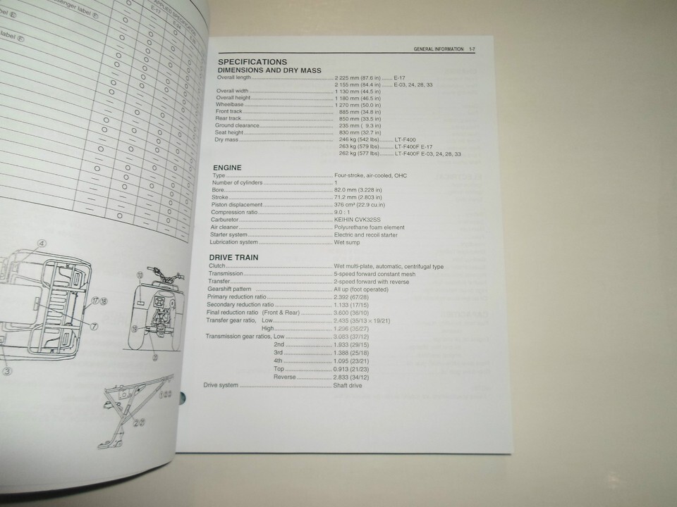 NOUVEAU MANUEL D'ENTRETIEN SUZUKI LT-F400/F LTF400F 2002-2007