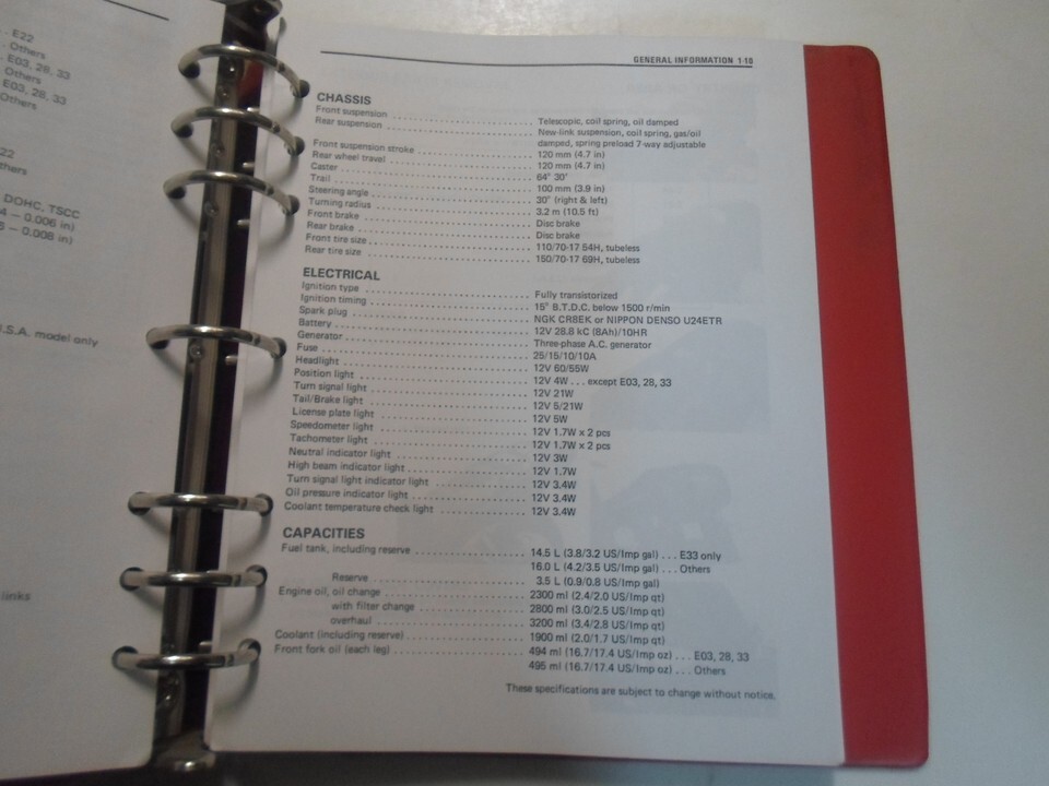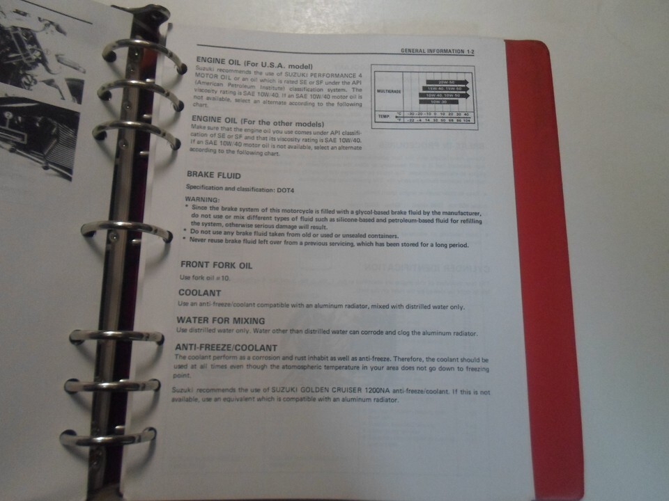 Le classeur lui-meme presente des taches tres mineures sur la couverture avant et arriere, y compris a l'interieur, et tout le contenu qu'il contient est en bon etat lisible. Le manuel PEUT ETRE manquant de pages. Beaucoup d'informations et illustrations, couvre beaucoup, explose illustrations et/ou schemas, excellent manuel a avoir lorsque vous possedez une SUZUKI et qui gardera votre MOTO sur la route. Ce manuel vous fera economiser de l'argent Reparations/ /Service. Si vous n'etes pas satisfait de votre experience d'achat, veuillez nous contacter pour obtenir une solution avant de decider de quitter un NEUTRE ou un NEGATIF Commentaires, nous ferons de notre mieux pour resoudre tout probleme pour vous des que possible. Nous vous fournirons le meilleur service possible car le POSITIF Les