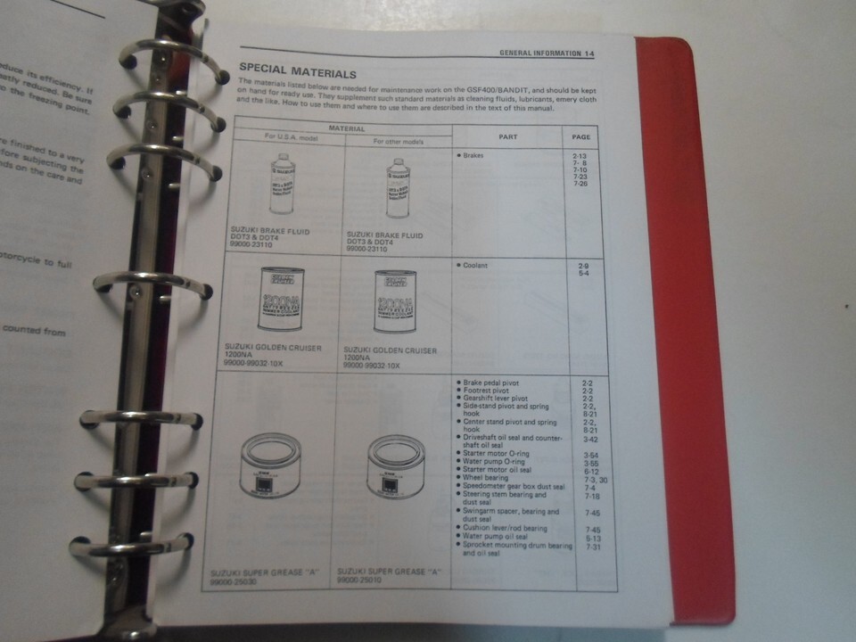 Beaucoup d'informations et illustrations, couvre beaucoup, explose illustrations et/ou schemas, excellent manuel a avoir lorsque vous possedez une SUZUKI et qui gardera votre MOTO sur la route. Ce manuel vous fera economiser de l'argent Reparations/ /Service.