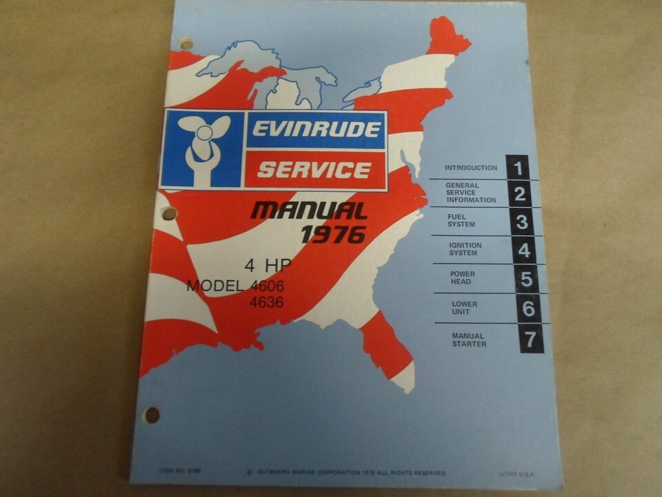 Manuel De Réparation De Service Evinrude 1976 4 HP 4HP 4606 4636 OEM Bateau