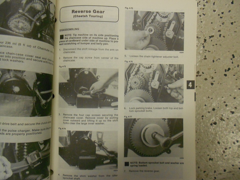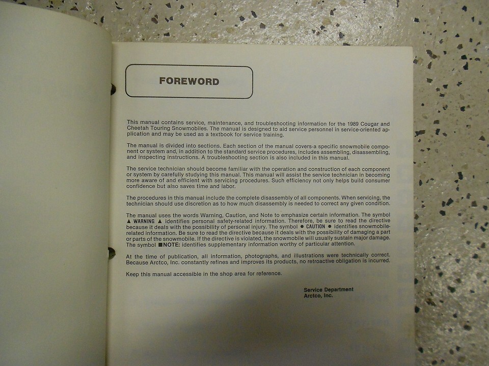 Beaucoup d'informations et d'illustrations, couvre beaucoup, aucune page manquante, etape par etape Instructions, explose illustrations et/ou diagrammes, excellent manuel a avoir lorsque vous possedez un Cougar-Cheetah ARCTIC CAT. Ce manuel vous fera economiser de l'argent Reparations/ /Service.