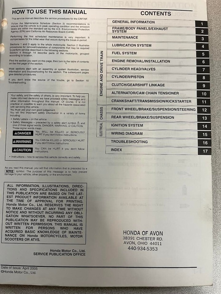 2004 2005 2006 2007 Honda CRF70F Service and similar items