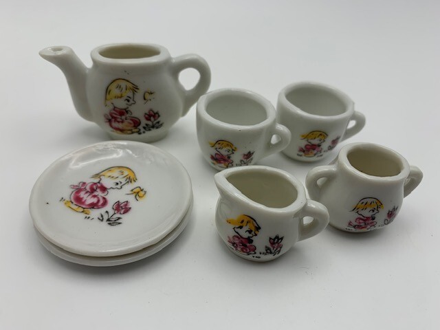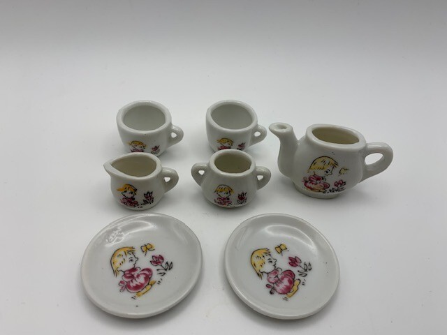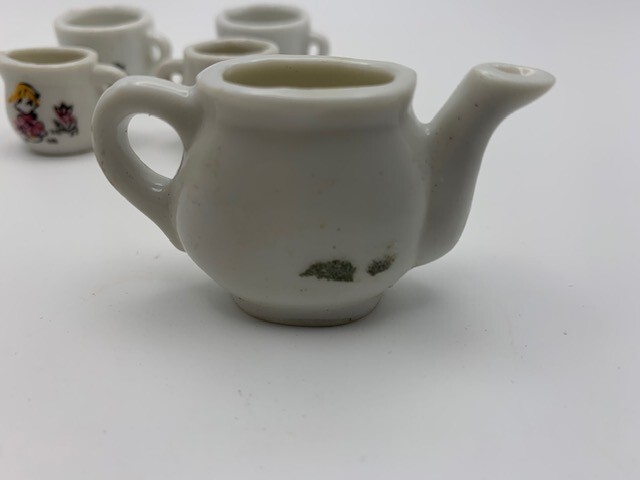 Japanese Miniature Porcelain Dollhouse Tea Set 7 Pcs Over all good. Some wear on finish as shown. Please refer to images.
