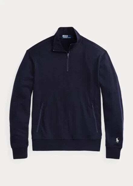 Polo Ralph Lauren Men's Wool Terry Quarter-Zip Pullover in Hunter Navy-Medium