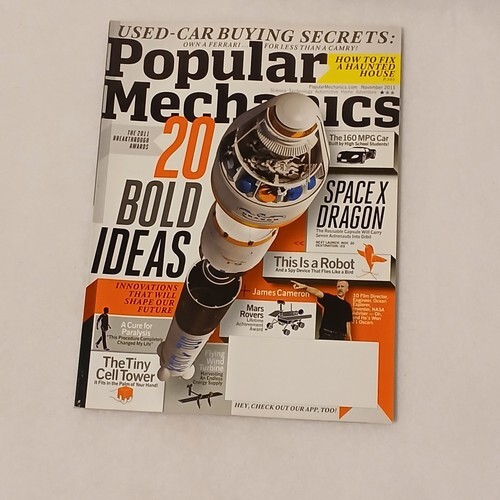 This listing is for an original copy of Popular Mechanics Magazine. This is the November 2011 issue. The cover has minor shelf wear. The pages are clean. There are no missing or torn pages.