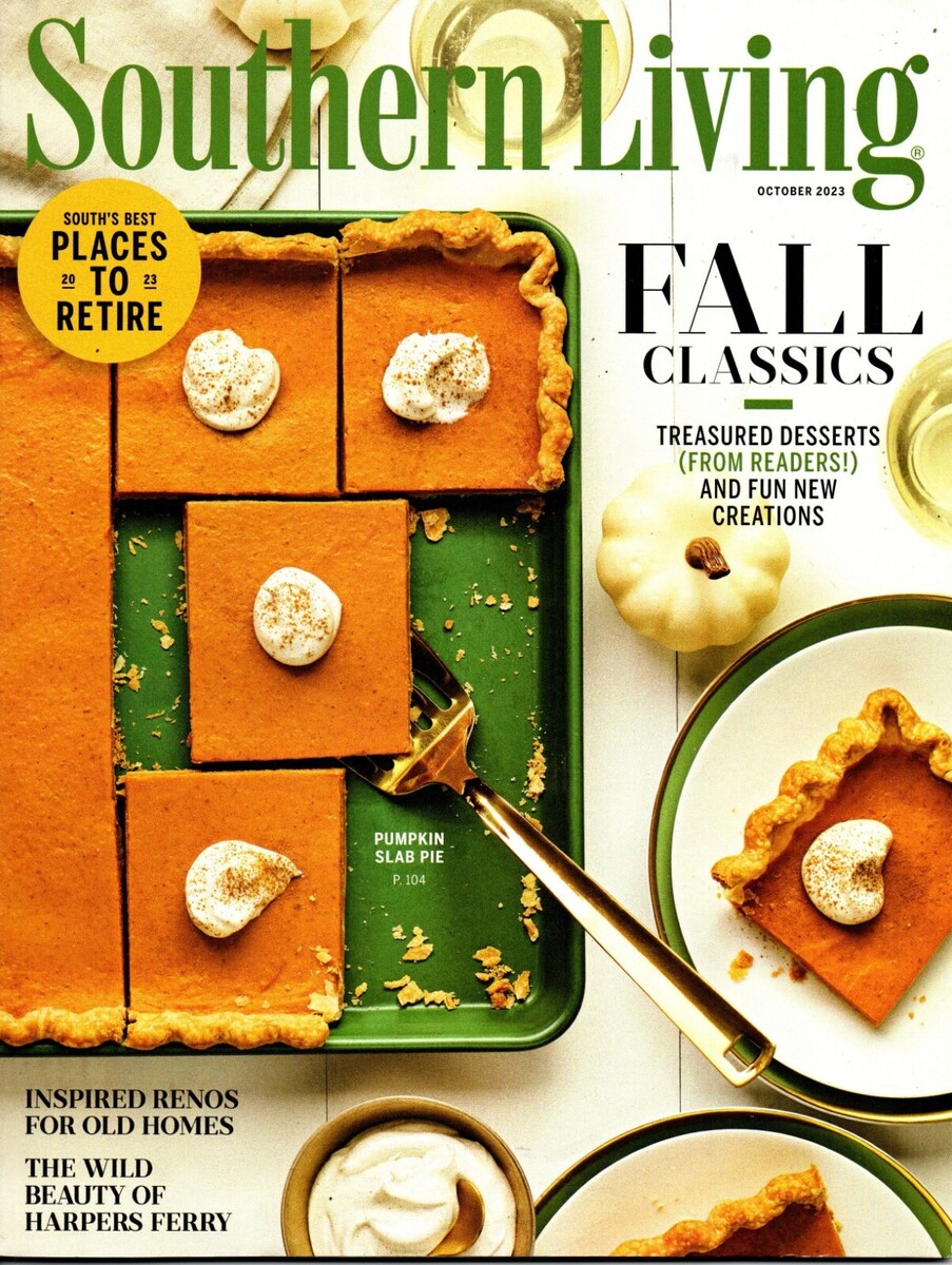 This listing is for an original copy of Southern Living Magazine. This is the October 2023 issue. The cover has minor shelf wear. The pages are clean. There are no missing or torn pages.