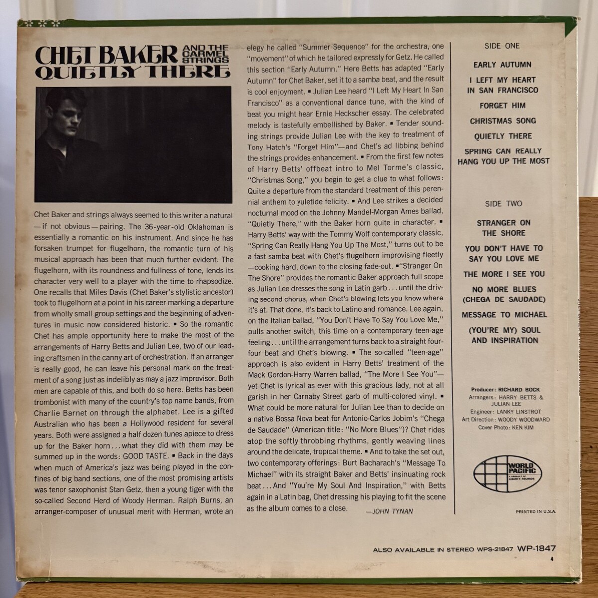 Chet Baker and The Carmel Strings Quietly There Vinyl LP WP-1847 Mono 1st Press