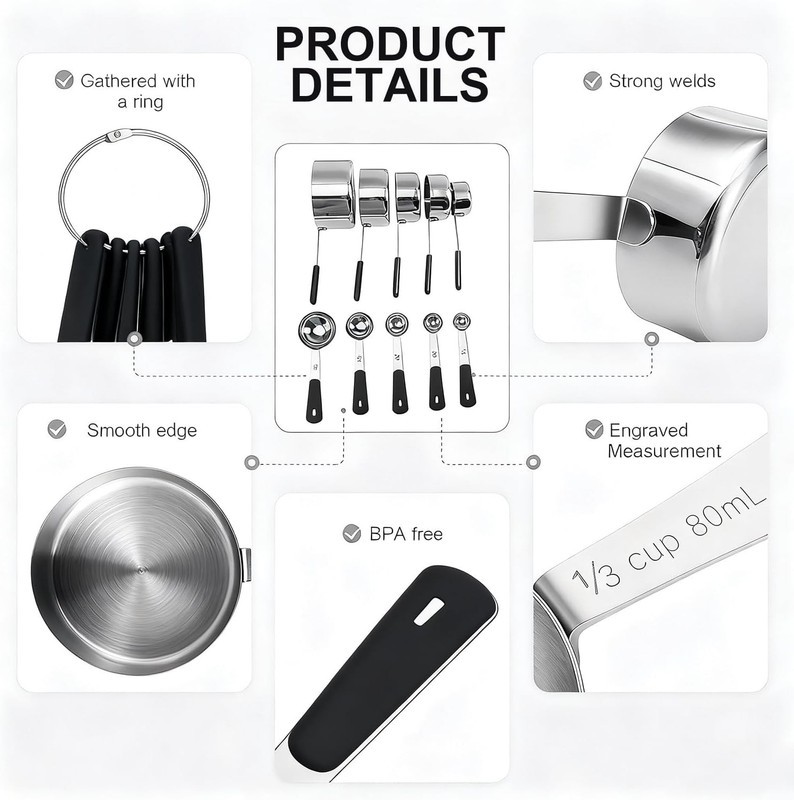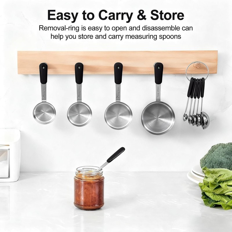 Crafted from food-grade stainless steel, this set is rust-resistant, long-lasting, and accurate for measuring both dry and liquid ingredients.