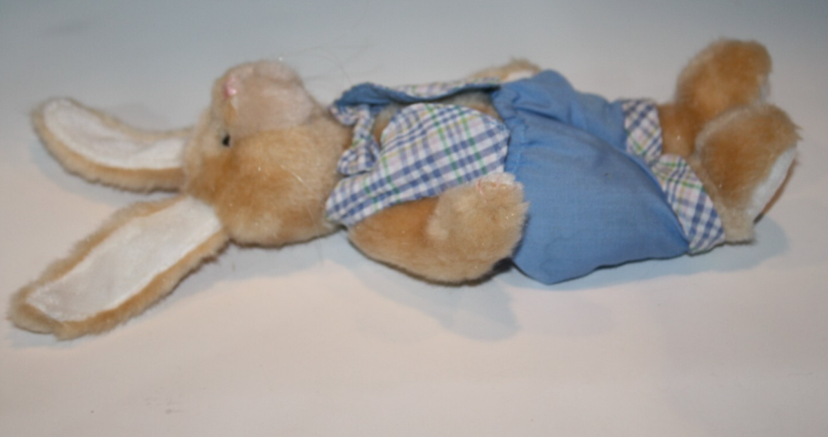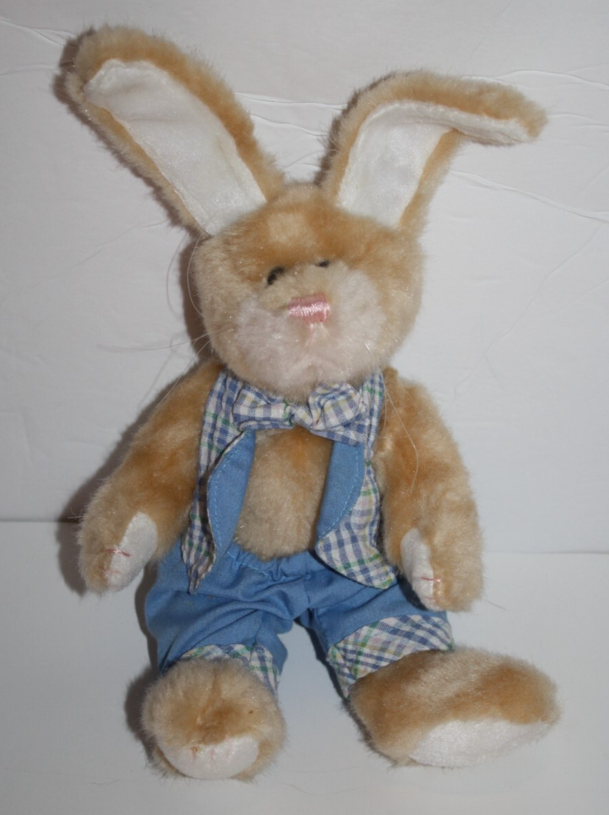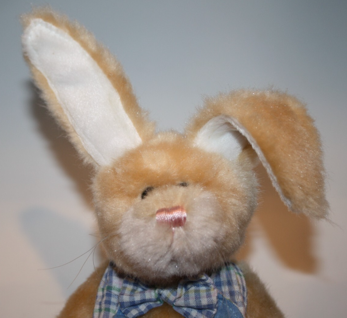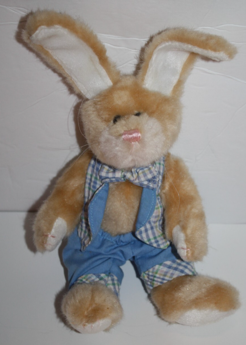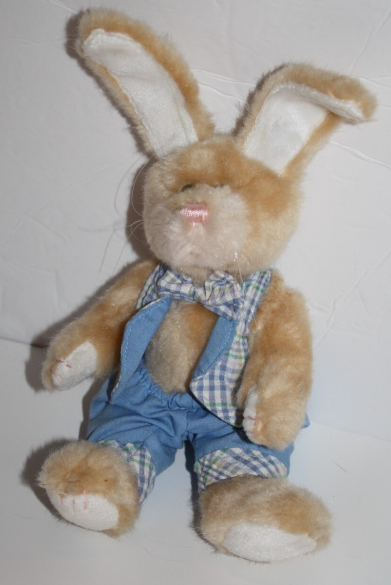 Hugfun Easter Bunny Rabbit 9" Jointed Beige Plush Blue Plaid Vest Tie Stuffed 01
