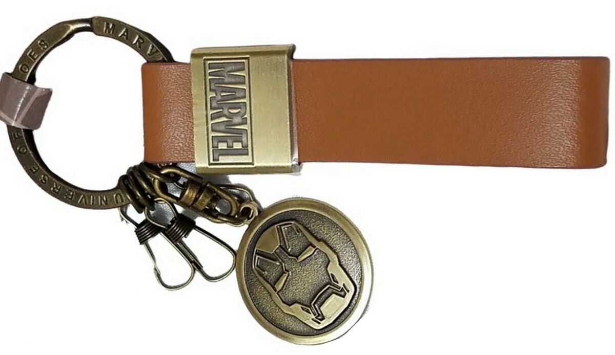 Headline: Authentic Marvel Studios Iron Man Genuine Leather Keychain