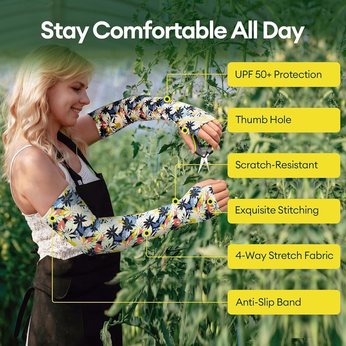 Sun Scratch Protection: Equipped with UPF 50+ protection, our sleeves shield your arms from harmful UV rays, minor cuts, and thorny branches, allowing you to garden with confidence.