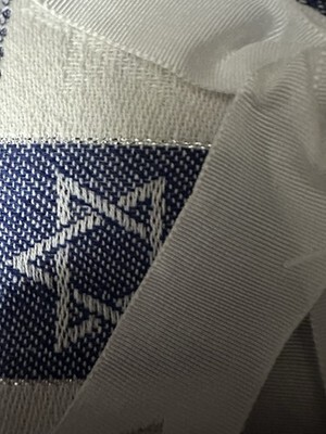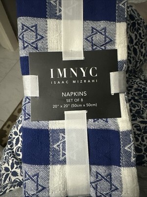 Isaac Mizrahi New York 8pc Jewish Stars Check 95%Cotton/5% Metallic Blue/Wht NIP