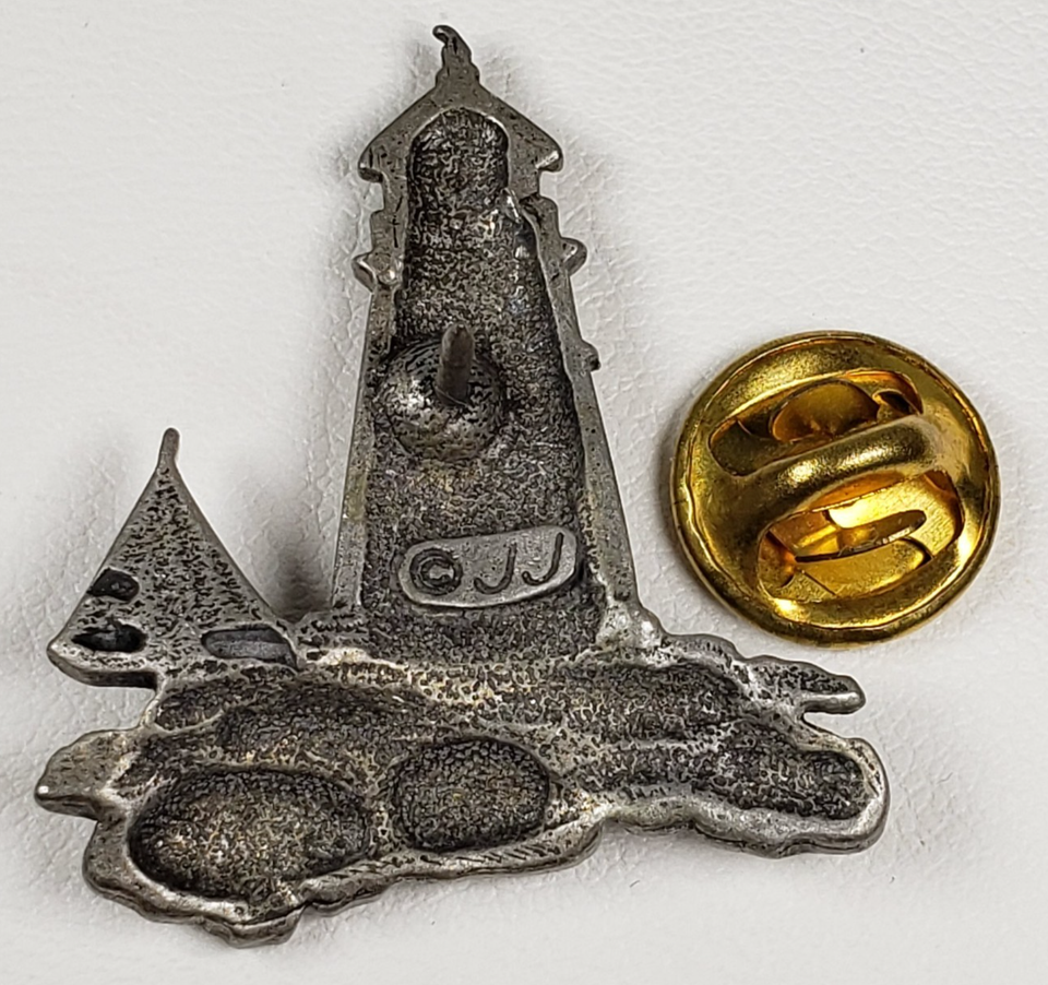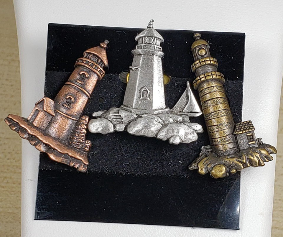 Vintage 1986 JJ Lighthouse Brooch Lapel Pin Lot (Pewter/Copper/Brass-Toned) Metallic Signed