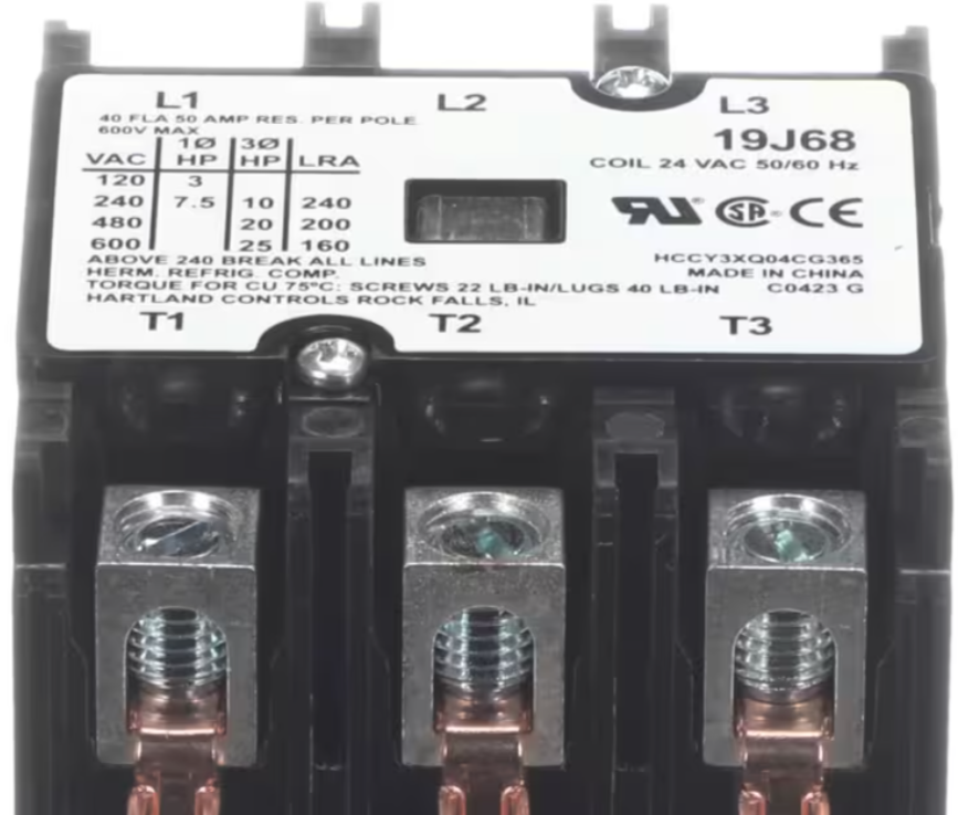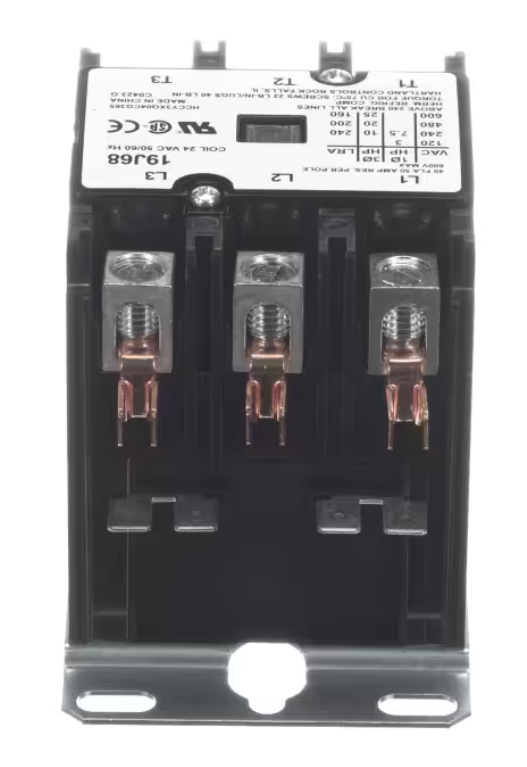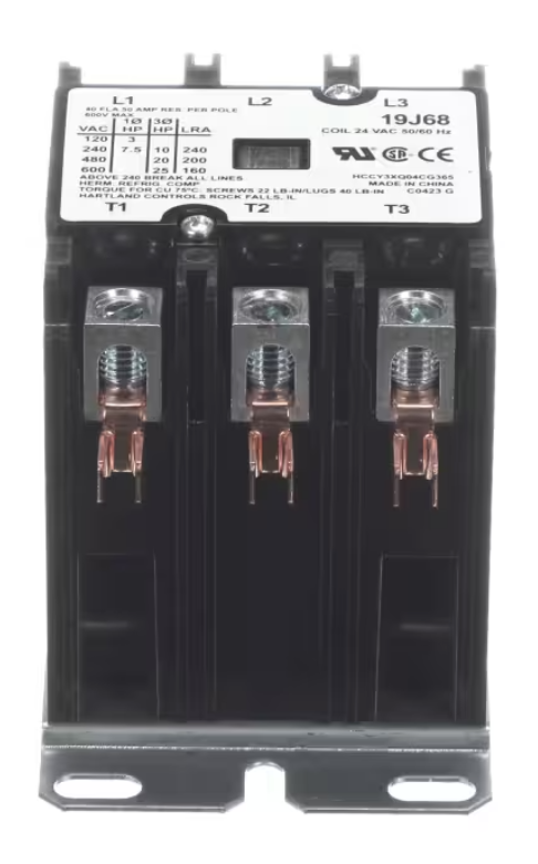 Lennox 19J68 Contactor is a heavy-duty 3 pole HVAC contactor designed for reliable switching in air conditioning and heat pump systems. Built with a 24 Volt coil and rated for 40 Amps, this contactor ensures stable electrical control of compressors and fan motors in demanding residential and light commercial applications. Engineered for consistent performance, it helps maintain efficient system operation.
