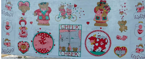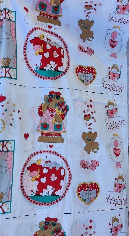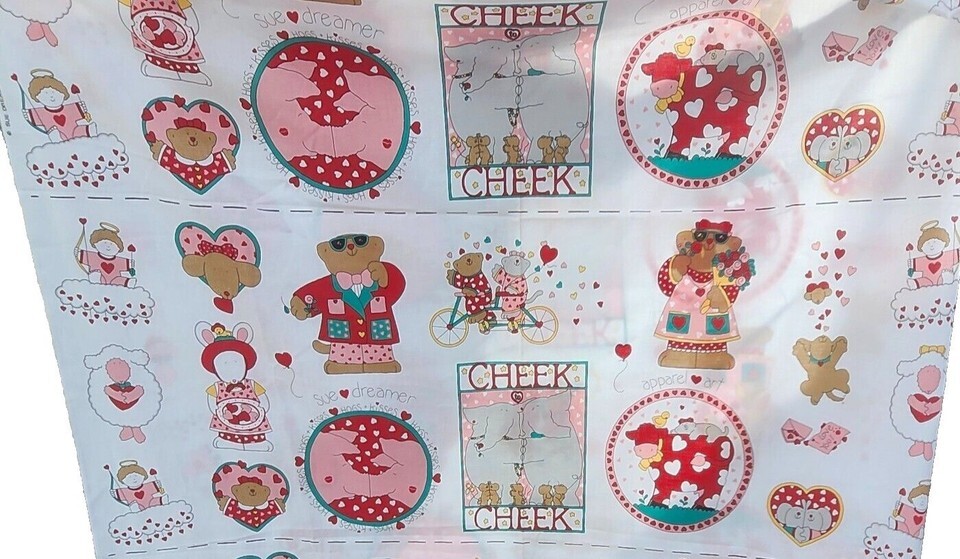 Valentine Sue Dreamer Hearts Love Cotton 1993 Fabric One Panel 18x45in