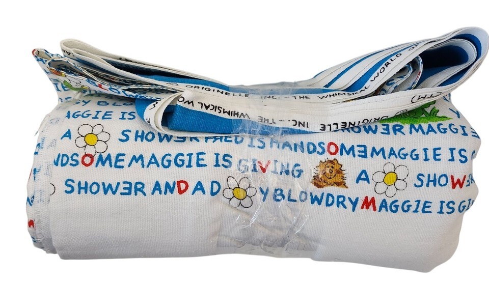 Sue Dreamer 1993 Fabric Hearts Valentine Love Cotton Fabric Panel features a charming multicolored design of hearts, perfect for quilting, crafting, and applique projects. The light weight cotton fabric is 18x45", making it ideal for creating various handmade items with a love and hearts theme. With a vintage feel and colorfast features, this fabric panel is a nostalgic and unique addition to any crafting collection.
