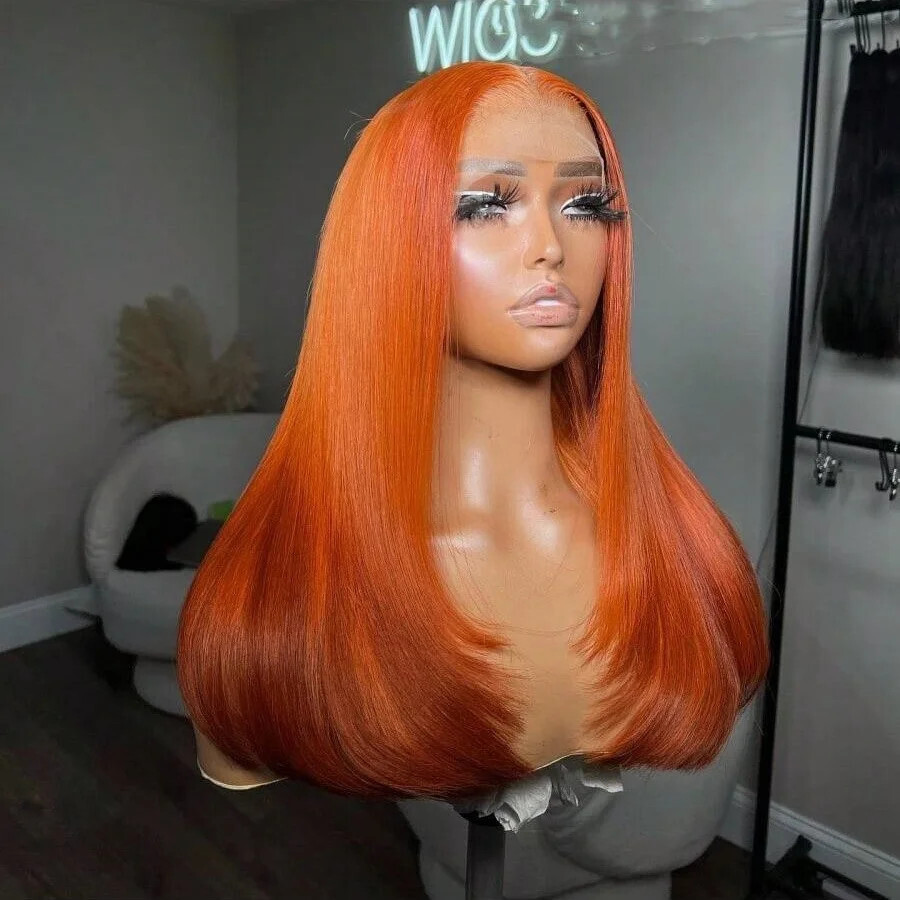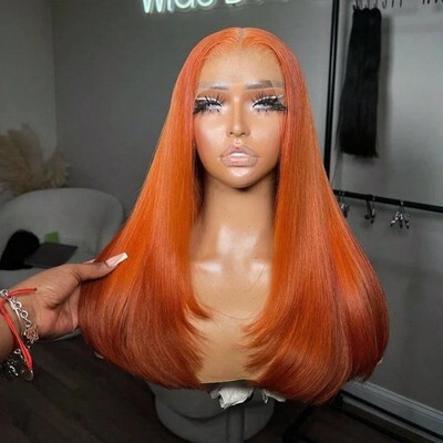 200% 34 Inch Straight Orange Ginger Ginger Orange 20inches 13x4 Lace Front Wig
