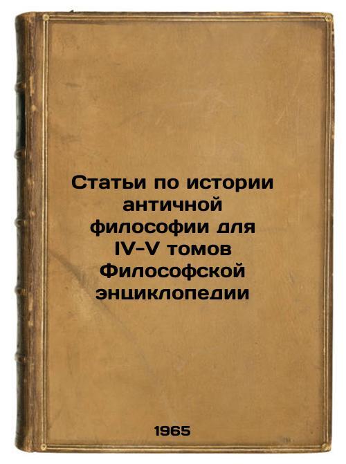 Stat'i po istorii antichnoy filosofii dlya IV-V tomov Filosofskoy entsiklopedii