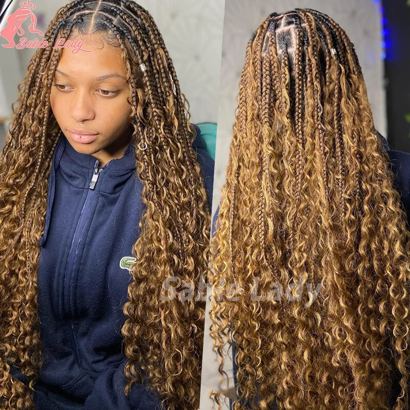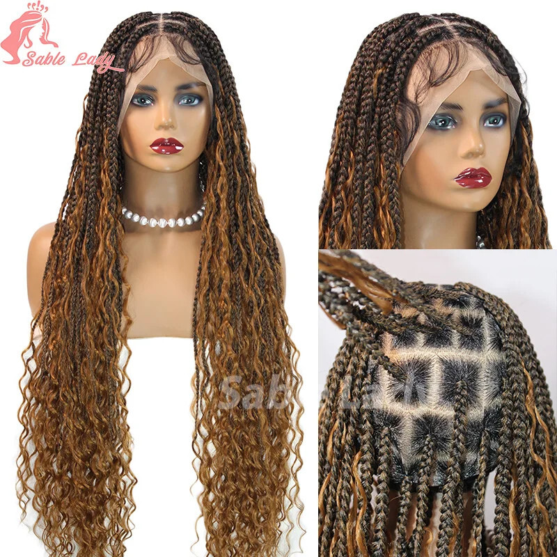 Boho Braided Wigs Synthetic Full Lace Front Wigs 1B27 36inches China Mainland