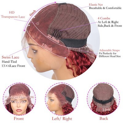 200% Burgundy 13x6 HD Wet And Wavy Lace Frontal Human Hair Wig 18inches 13x5