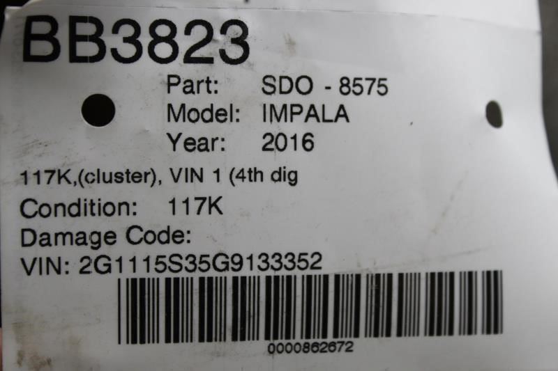 Speedometer Cluster 117K Miles New Style MPH 2016 CHEVROLET IMPALA OEM #12659...