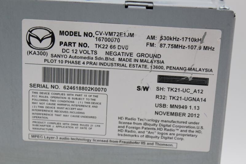 MAZDA CX-9 13-15 receiver, (Bluetooth), (AM-FM-CD), premium audio system (10 and 11 speaker)