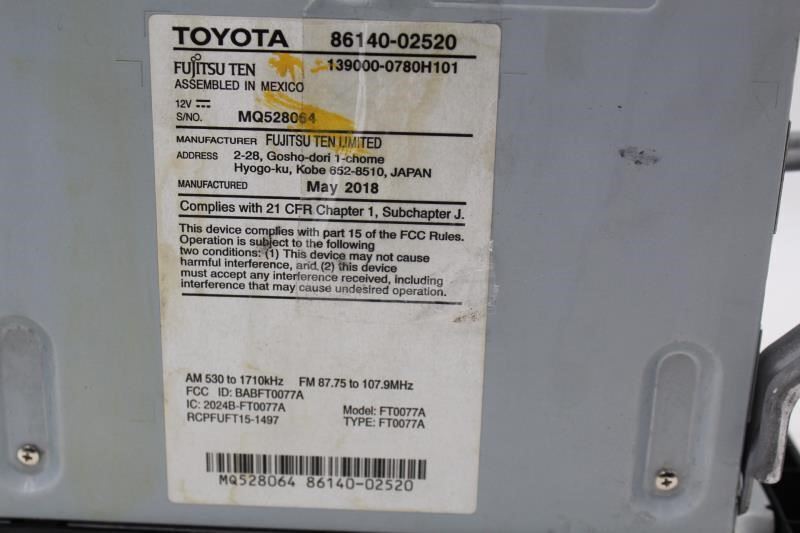 Audio Equipment Radio Sedan Display And Receiver 2017-19 TOYOTA COROLLA OEM 8641