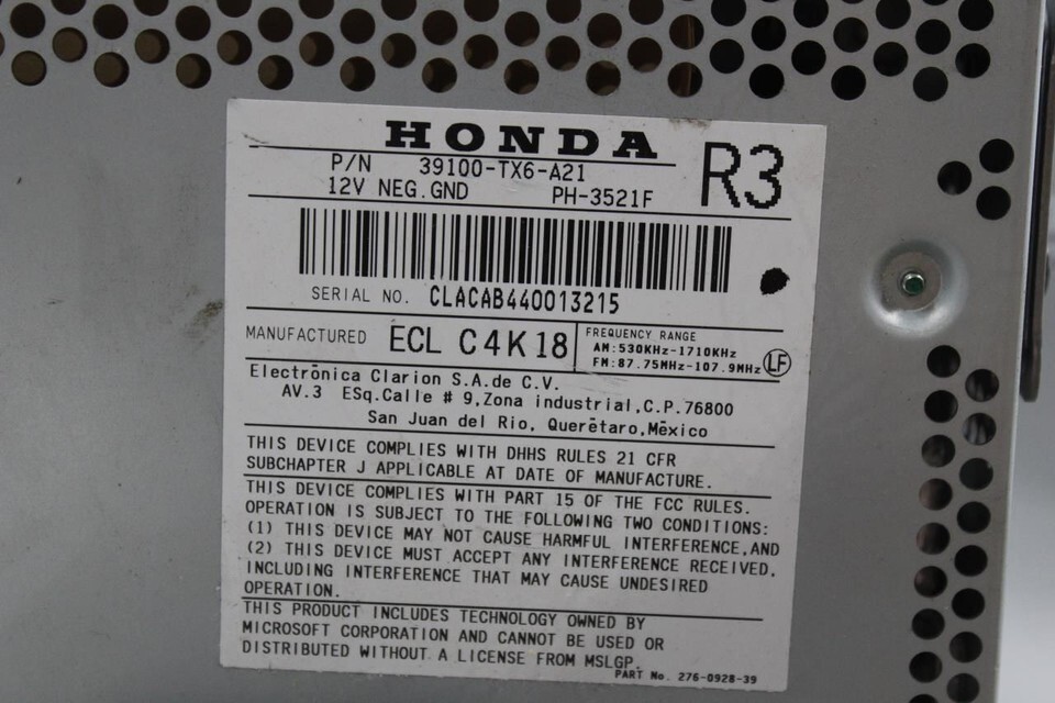 Audio Equipment Radio US Market Receiver Assembly Base 2014-2015 ACURA ILX 41068