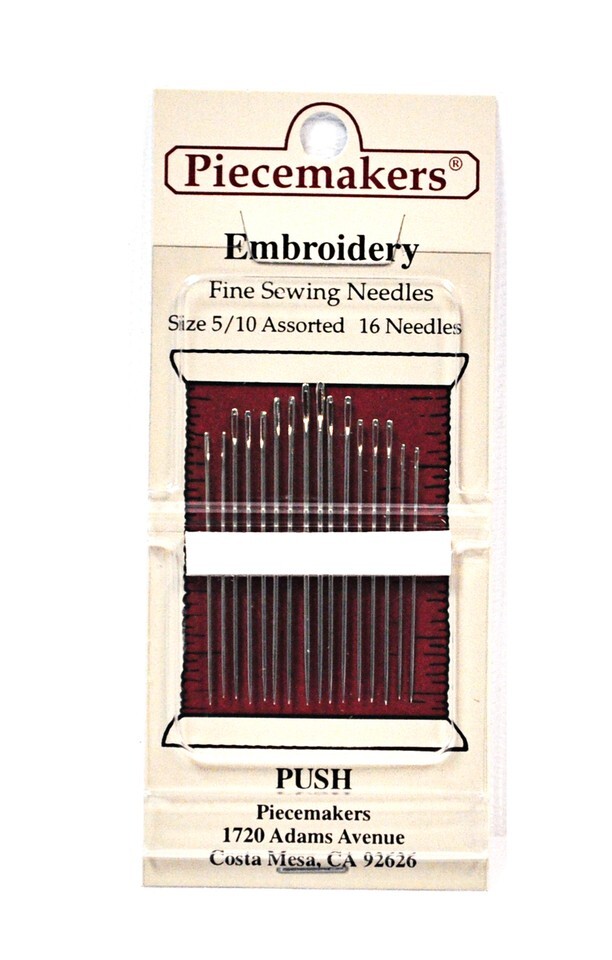 Piecemaker Embroidery Fine Sewing Needles Sizes 5/10 Assorted.