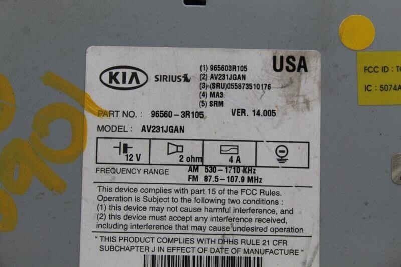 Audio Equipment Radio Receiver Fits 2014-2015 KIA CADENZA OEM #20594ID 965603...