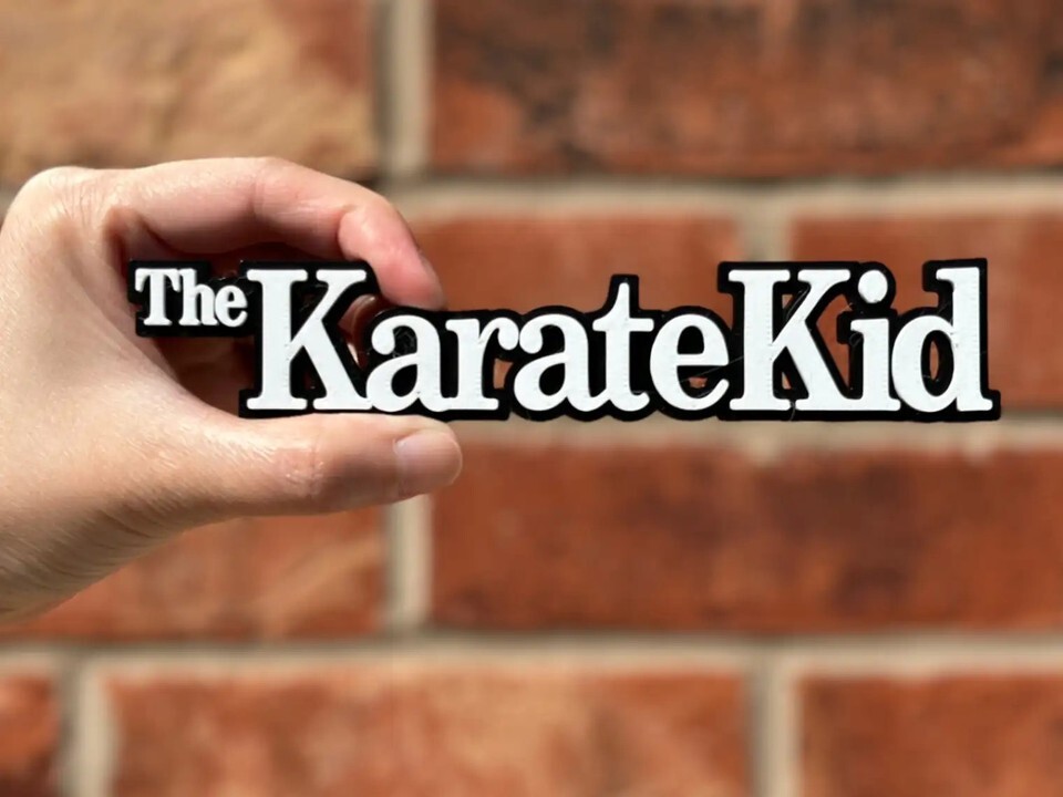 Celebrate the iconic 80s film with this collectible The Karate Kid logo emblem. This piece features the classic movie title font in bold white lettering on a black background, creating a sharp and recognizable design. Perfect for fans of the original film series and the hit show Cobra Kai, this item is a great accessory for a jacket, backpack, or pinboard. Add this piece of classic movie memorabilia to your collection today.