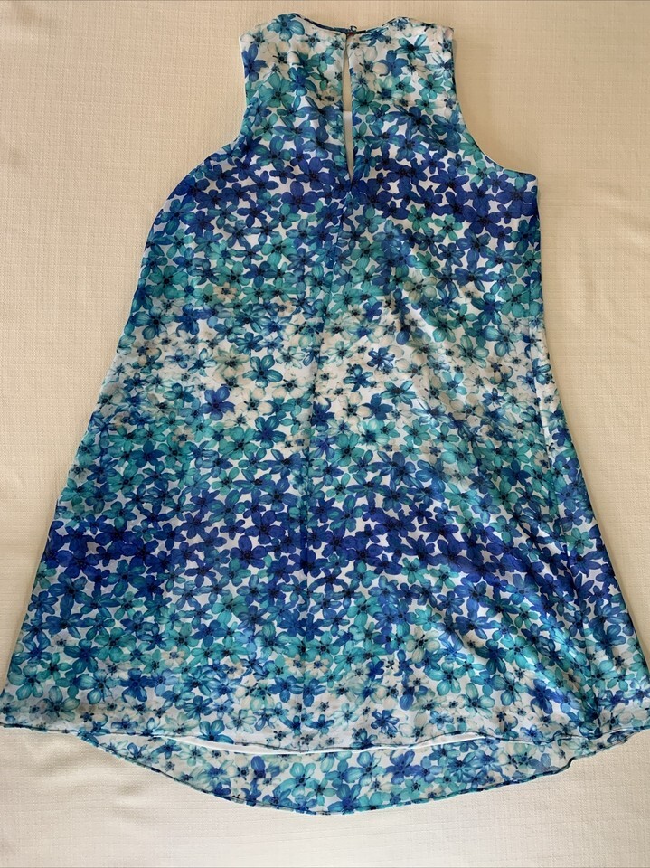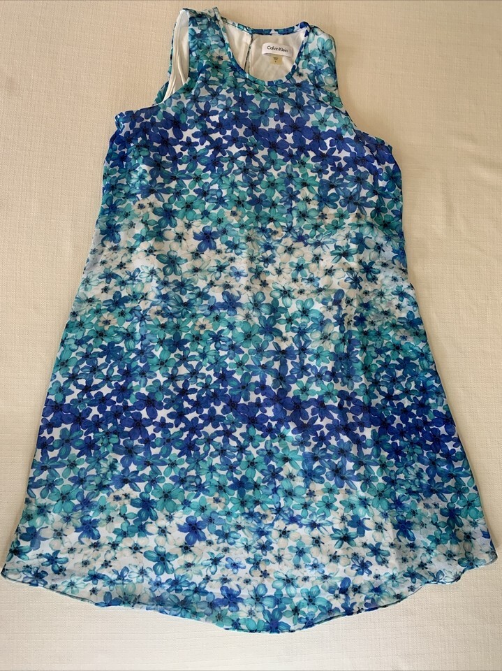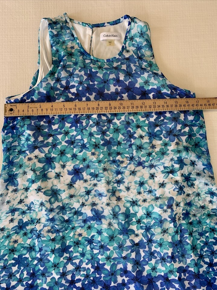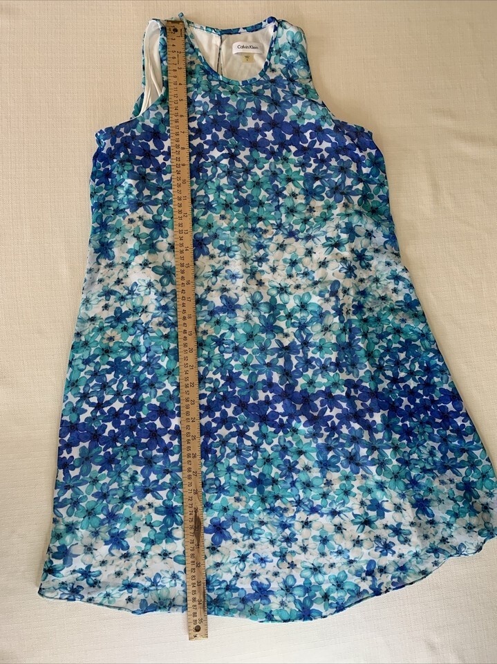 Calvin Klein Women's Blue Floral Sleeveless Shift Dress - 6. Condition is Pre-owned. Shipped with USPS Ground Advantage.