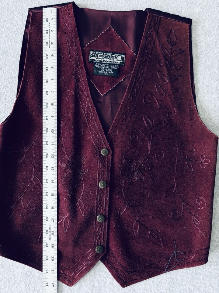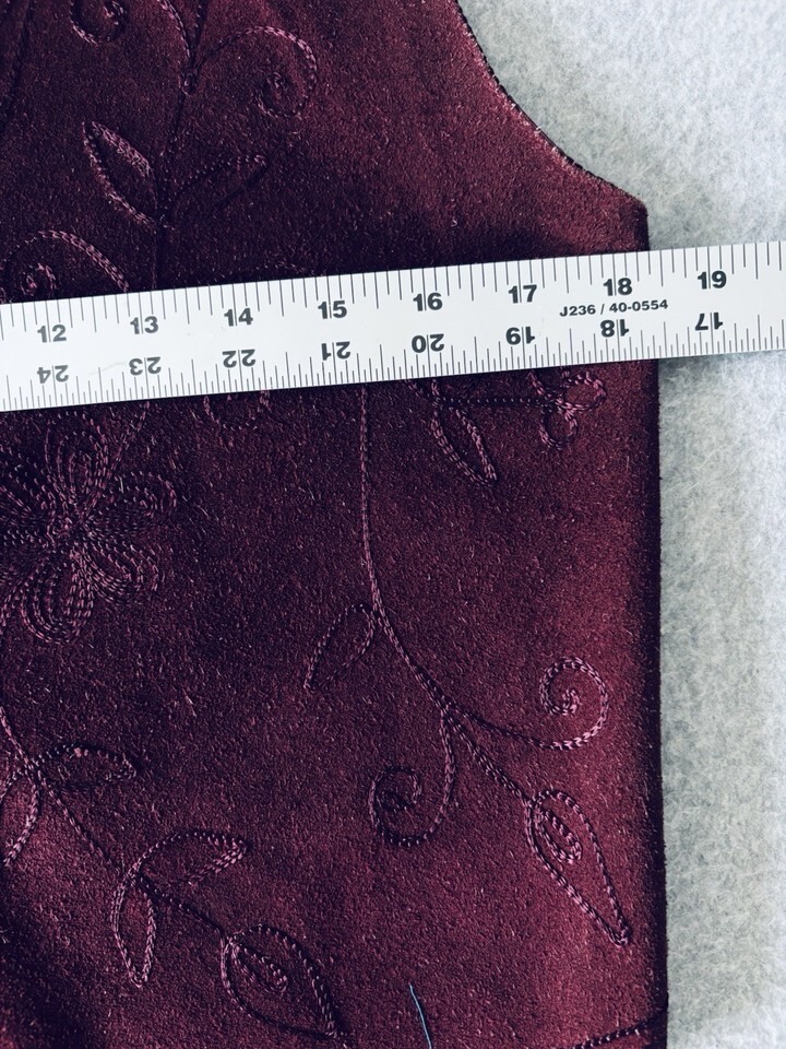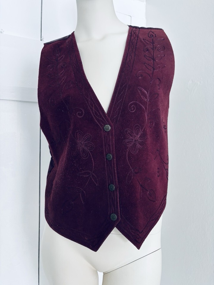 Vintage Maroon Suede Leather Vest Monochrome Embroidery Women?s PSmall Western