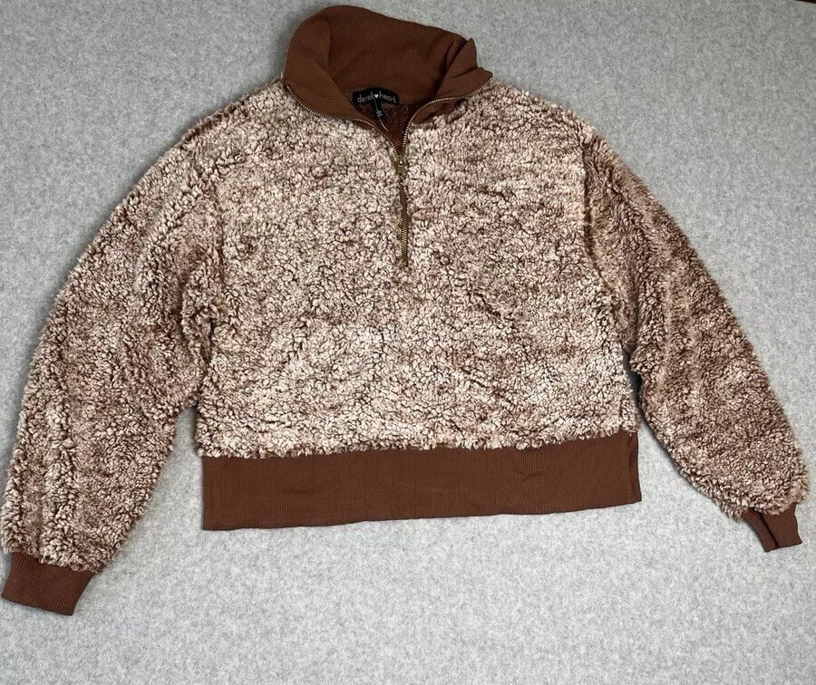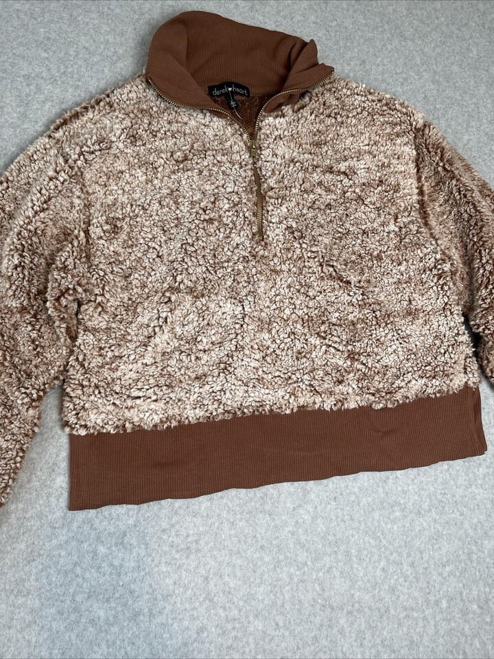 DEREK HEART Womens Sherpa Juniors Casual Pullover Half Zip Rib Sweater Brown L
