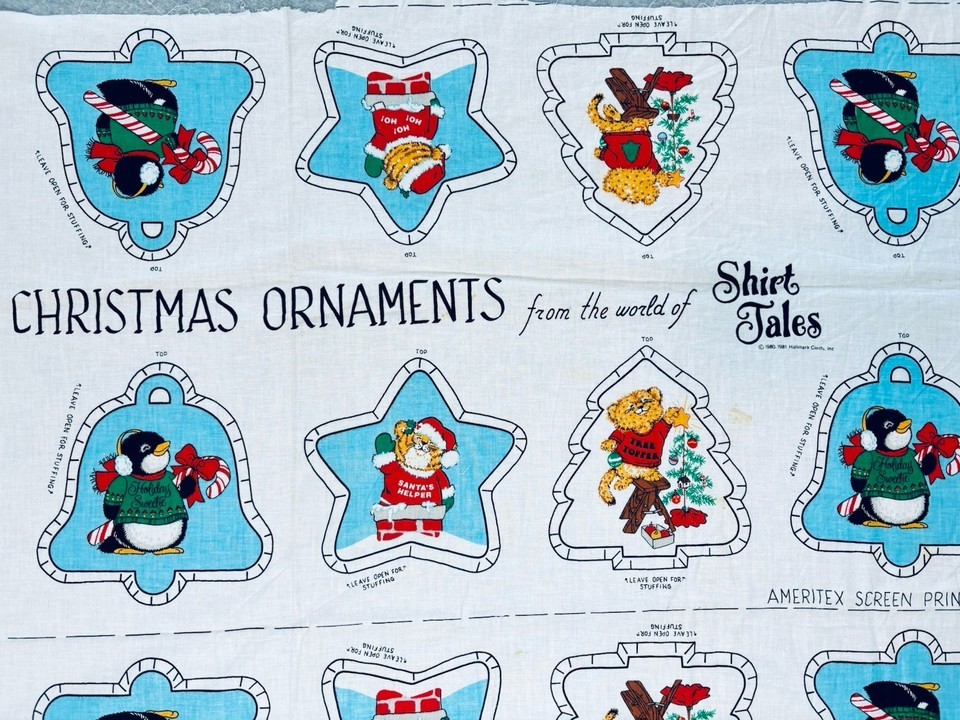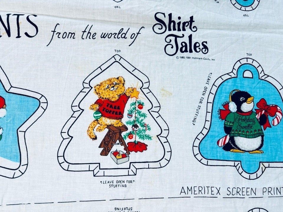 Hallmark Shirt Tales Christmas Ornaments Uncut fabric 1980, 1981